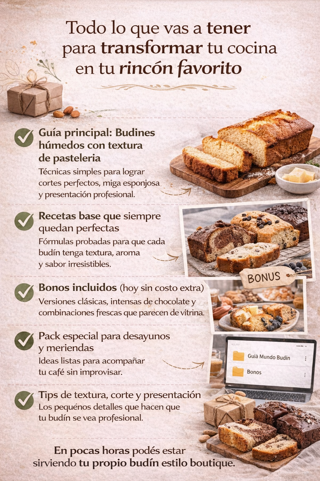 “Siempre compraba budines en cafeterías porque en casa no me salían igual. Con estas recetas logré esa miga húmeda y esponjosa.”